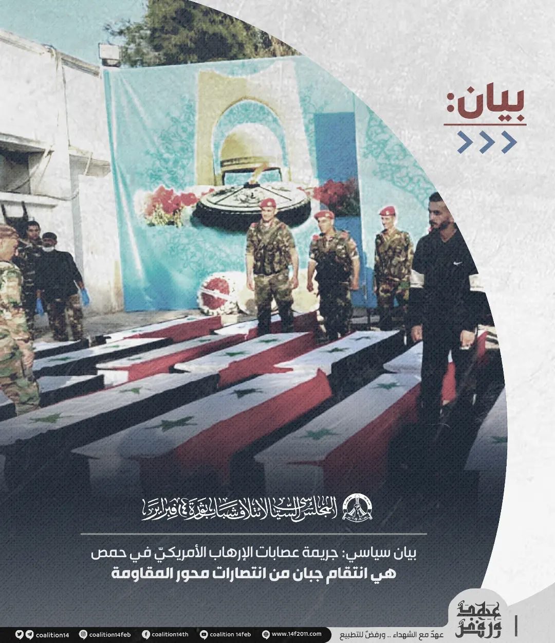 بيان سياسي: جريمة عصابات الإرهـاب الأمريكيّ في حمص هي انتقام جبان من انتصارات محور المـقاومة