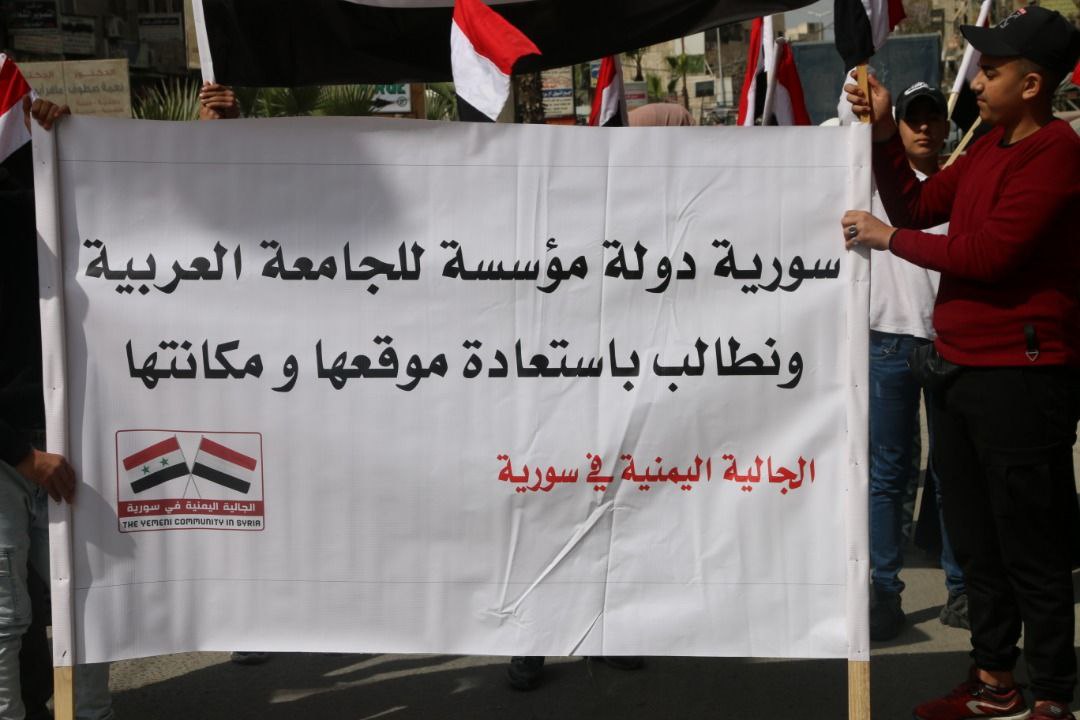 بمشاركة يمنية وقفة تضامنية للجاليات العربية في دمشق تطالب بعودة سورية إلى الجامعة العربية
