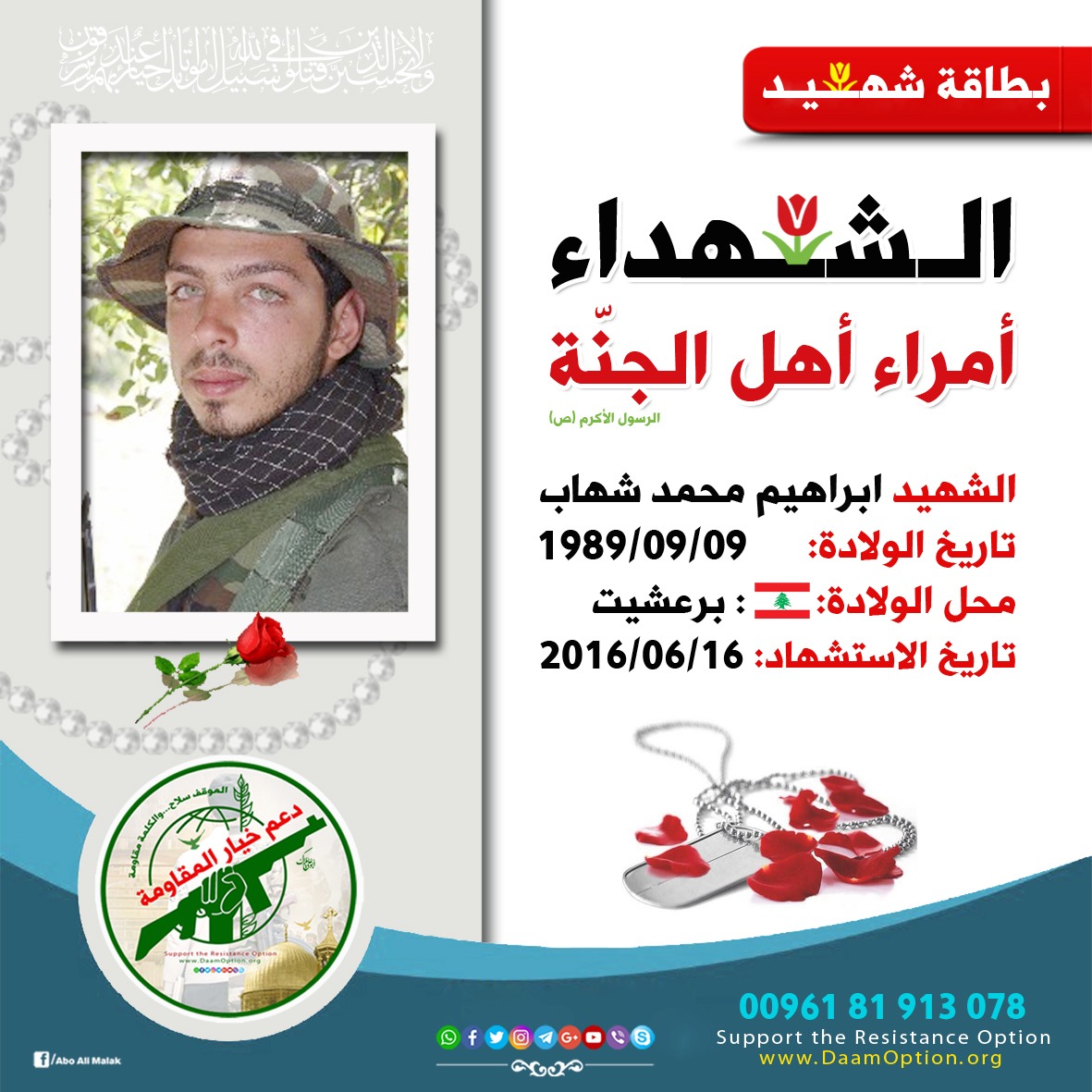 الشهيــد من المقاومة في لبنان أبراهيم محمد شهاب