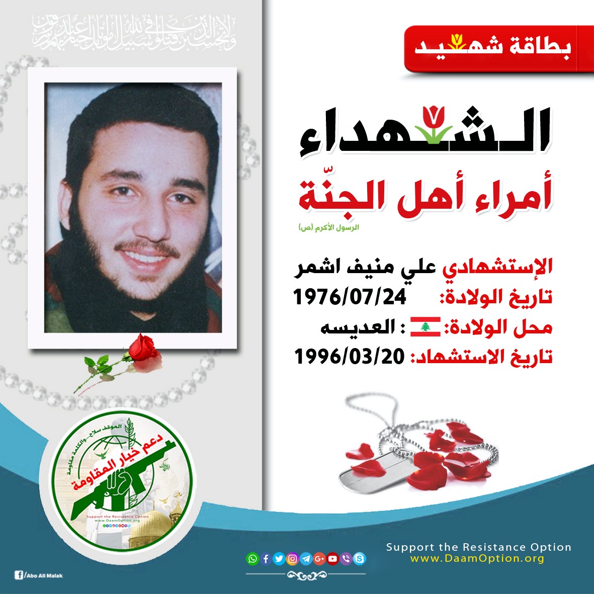 الاستشهادي علي منيف أشمر