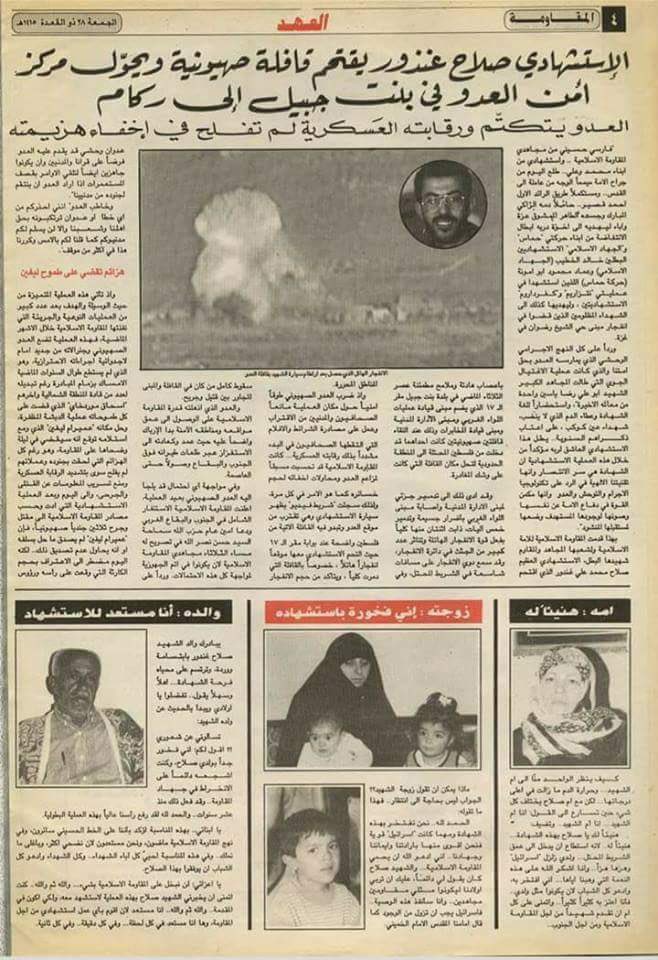 ملاك الاستشهاديين صلاح غندور يمضي إلى الشهادة.. والسيد نصرالله يبارك له الفوز العظيم