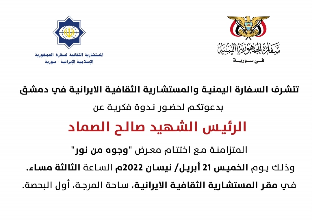 افتتح سفير الجمهورية اليمنية في سوريا عبدالله صبري والمستشار الثقافي الإيراني في دمشق الدكتور حميد عصمتي، في العاصمة السورية معرضاً لشهداء اليمن ومحور المقاومة.