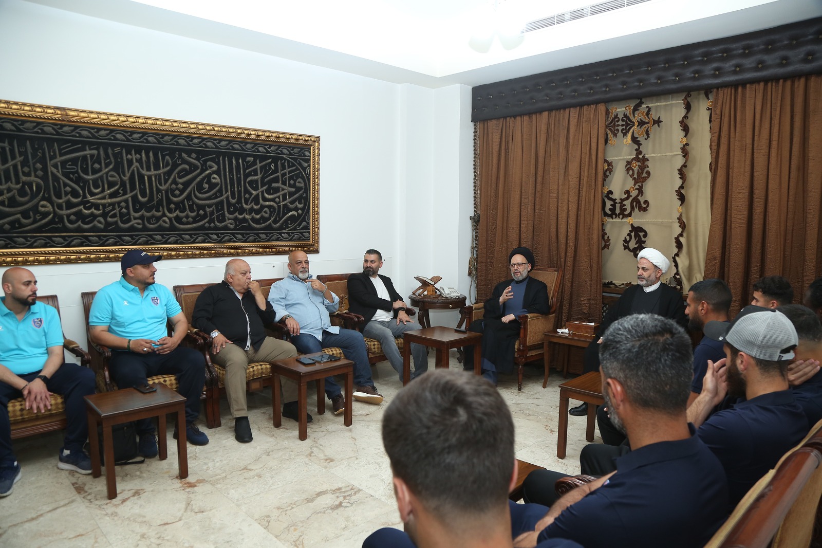 في البداية رحب سماحته بالفريق معبرا عن الاعتزاز والفخر بالصورة النموذجية التي يقدمها والتي تنطلق من روحية ايمانية واخلاقية وإنسانية ورياضية تمثل رؤية المرجع فضل الله(رض) في بناء الشخصية التي تعيش الانفتاح والتواصل مع الاخر، متوجها بالشكر الجزيل إلى الهيئة الإدارية التي ترتقي بالفريق إلى درجة متقدمة متمنيا الشفاء العاجل لرئيس النادي الحاج علي حيدر الذي كانت له بصمات واضحة في رفع مستوى الفريق مقدرا دور الجهاز الفني وكل اللاعبين الذين عبروا عن اخلاصهم وتفانيهم في هذه المرحلة الصعبة حتى يصل الفريق إلى مصاف الدرجة الأولى.